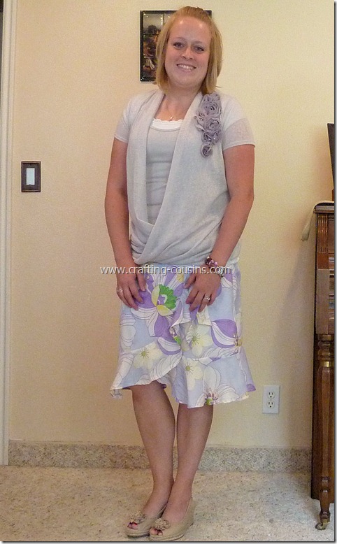 Bleh. I hate seeing pictures of myself. Anyway, that is the skirt I made for Easter, with my super cute shoes from Amazon, and a cheapola shirt from Maurices’. The detail on the shirt was fun. Well worth the four dollars I spent on the shirt!